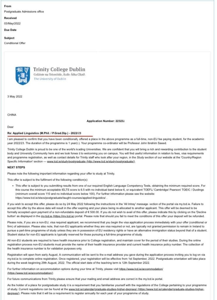 爱尔兰的申请虽然相对英国来说,不算是热门留学地,但是近年来越来越多学生发现了这个宝藏大学,风景优美,作为欧洲古老大学之一,浓厚的文化底蕴自是不必多说,毕竟,谁不想和王尔德做校友呢!
