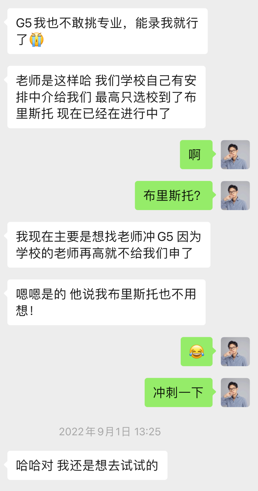Zoe 同学就是很好的例子。她所就读的院校给她安排了留学申请老师,但她的老师只给她申请了布里斯托及排名以下的学校,再高的就不给申了,认为她“布里斯托也不用想”。而Zoe 同学是有名校梦想的,于是她找到了我们,想冲刺G5试试。了解Zoe 的情况后,我们认为她的综合条件还是有希望的,于是我们一直鼓励她。慢慢地,Zoe 同学坚定了信心并决定与我们合作。
