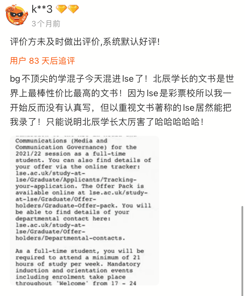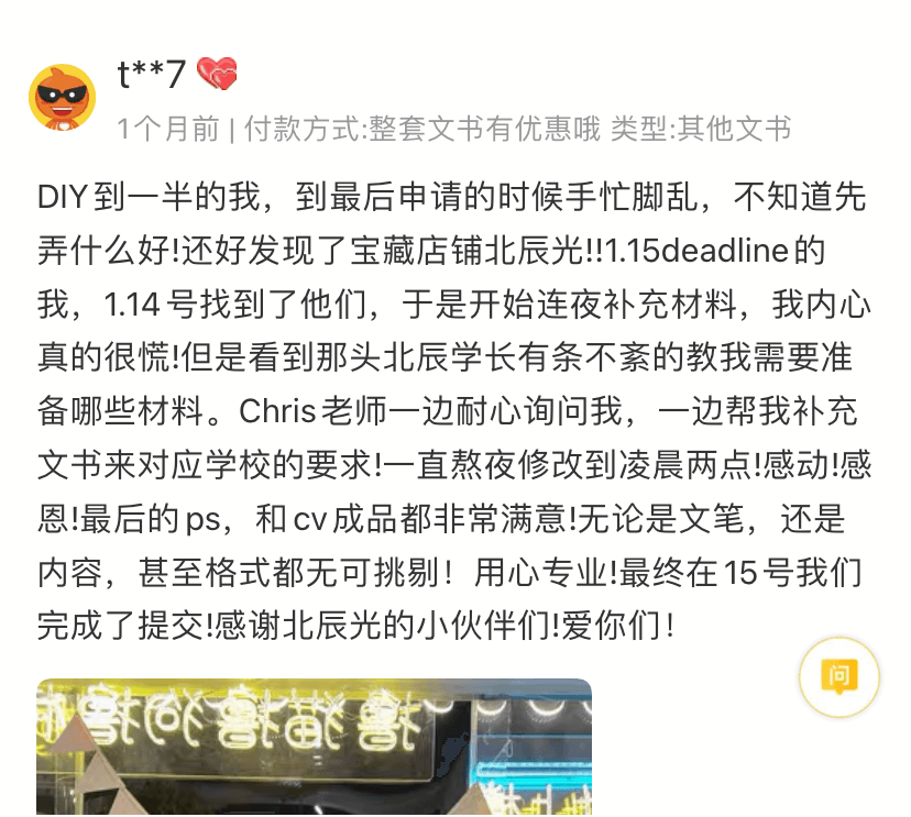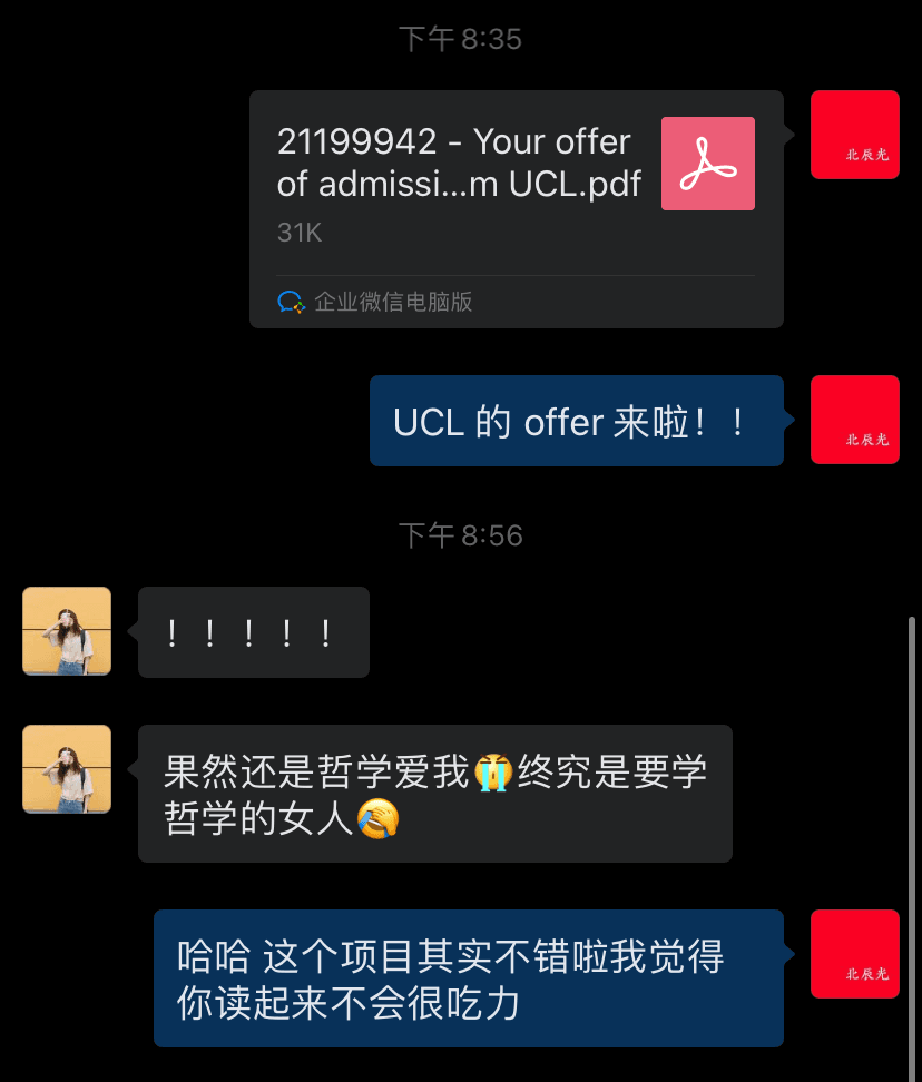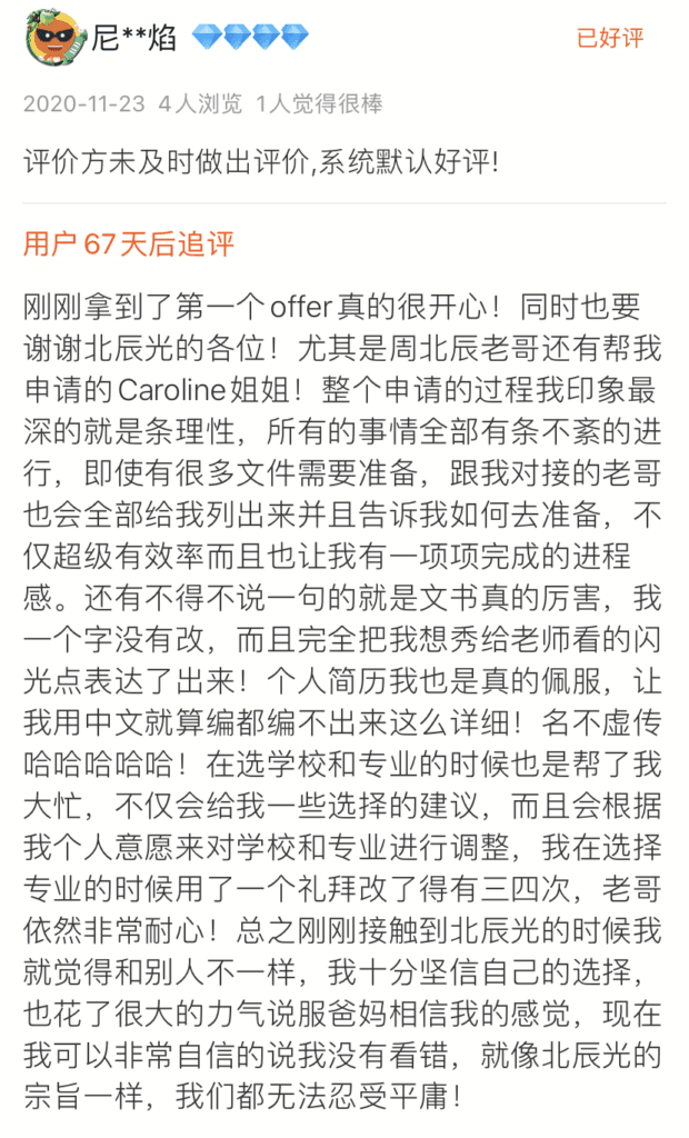 点击查看2018-2019申请季好评点击查看2019-2020申请季好评一位学员给北辰光写的「硬软文」。想要了解北辰光的留学申请服务?查看:2021英国研究生申请计划2021 美国研究生冲刺计划查看一个申请上UCL的学生在伦敦找到KPMG工作的帖子