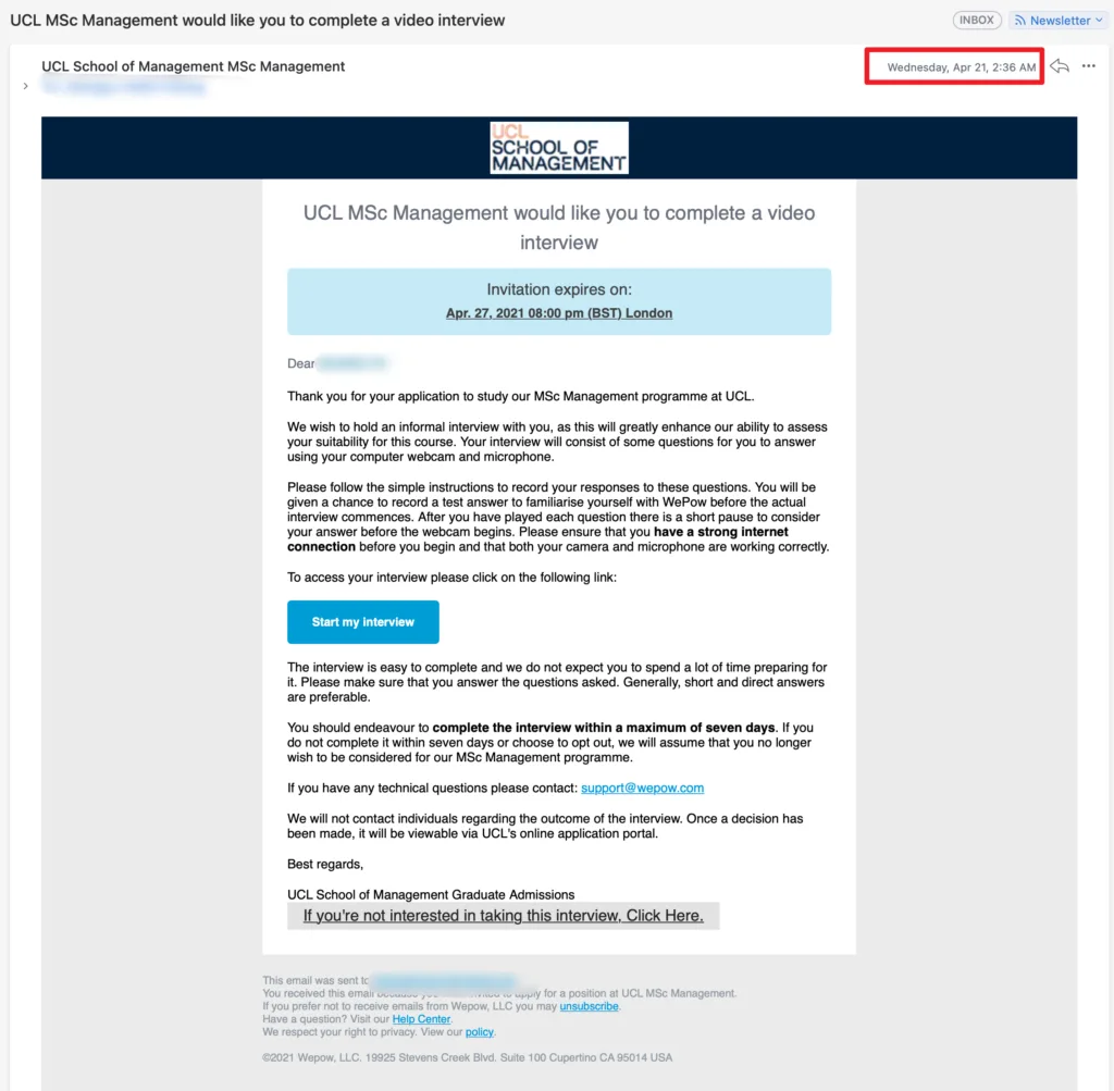 Mar 30 2021申请递交完成,支付申请费 ( 15th April 2021为申请截止日期)