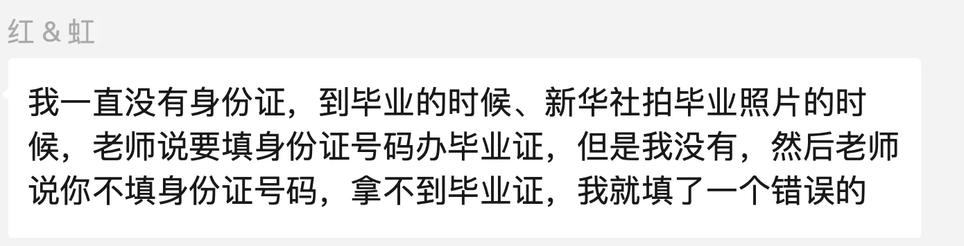 比如,在这个案例中,同学的名字依旧是红(错误的),而身份证号码却已经改过来了(正确的)。