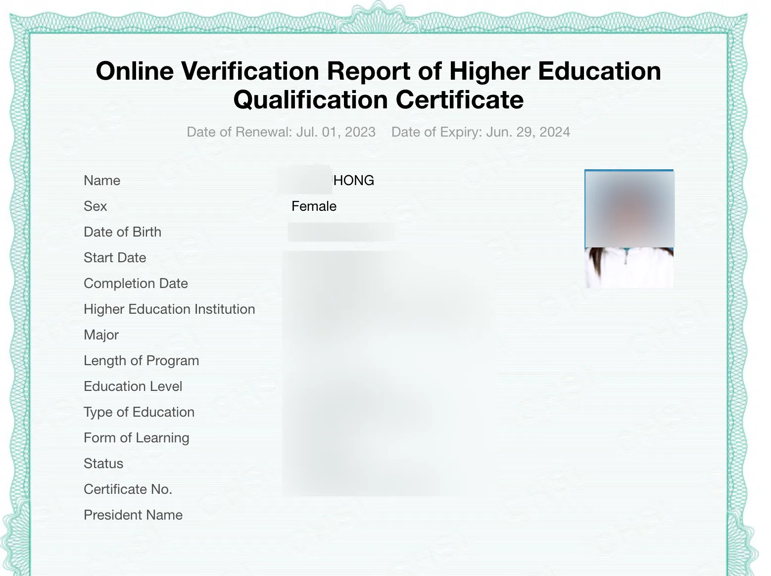 学信网学历登记名字:程红